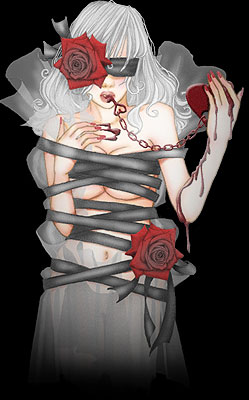 眩しいほどの少女の裸体に、美術品でも鑑賞するような眼差しを注いでいたサマエルは、しばしの間の後、すいと彼女に近づいていき、その背中に腕を回した。