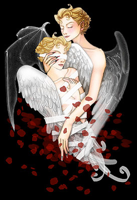 しかし、サマエルは離されまいとしがみつき、頬を天使の胸にすりつけて、甘い声を出した。