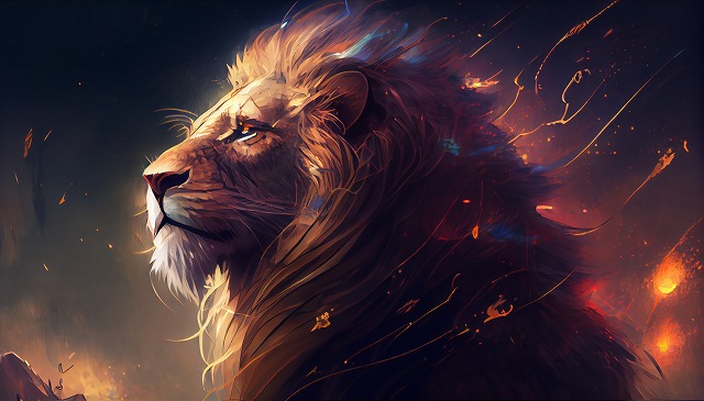 ライオンは、ぶるぶると炎のたてがみを揺すった。